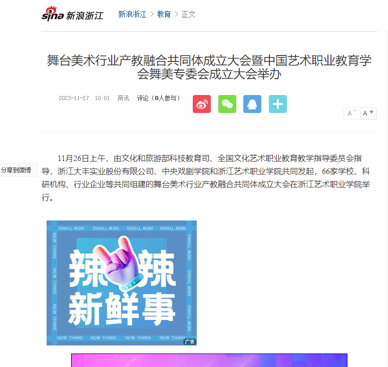 新浪浙江:舞台美术行业产教融合共同体成立大会暨中国艺术职业教育学会舞美专委会成立大会举办